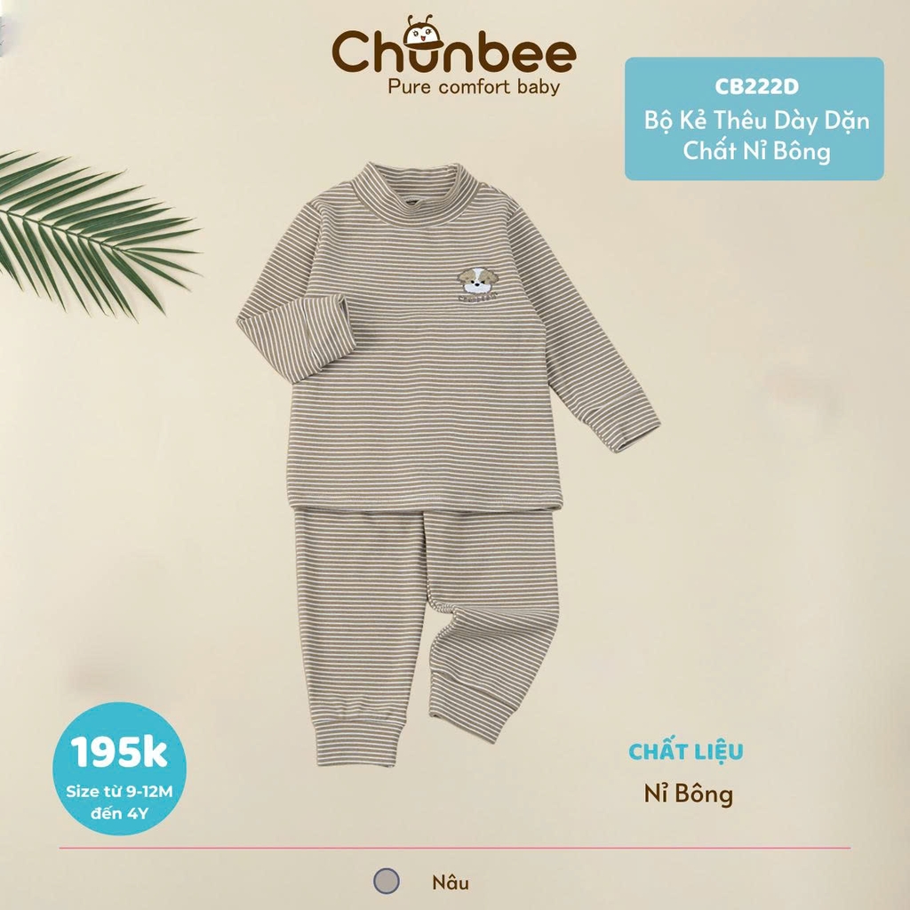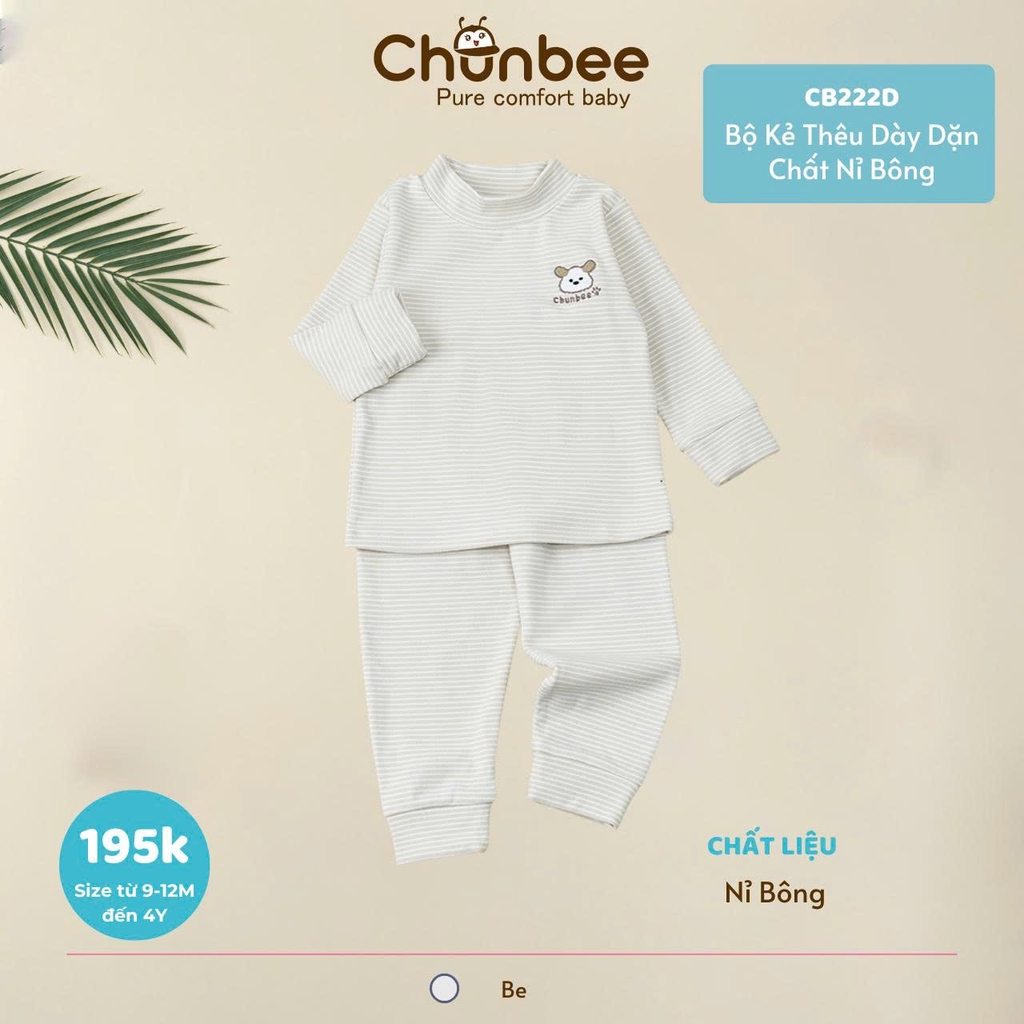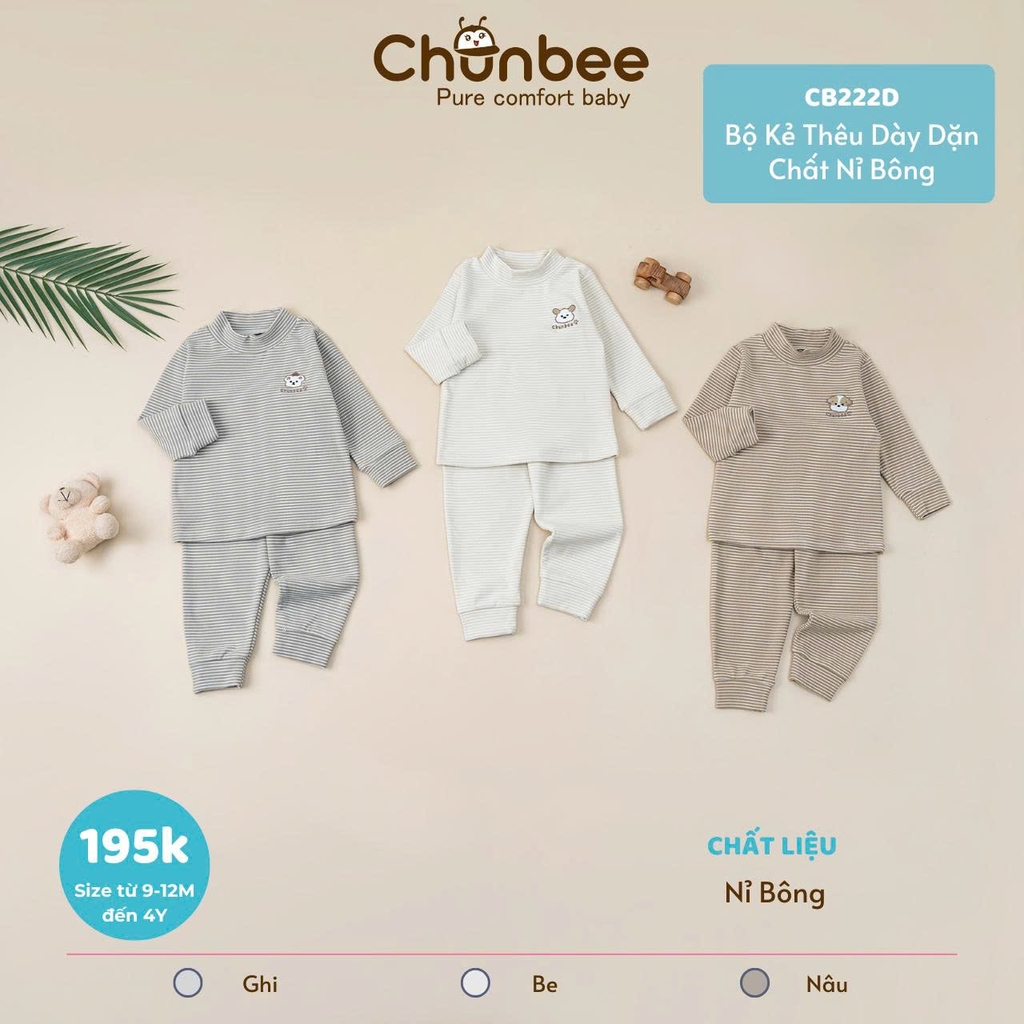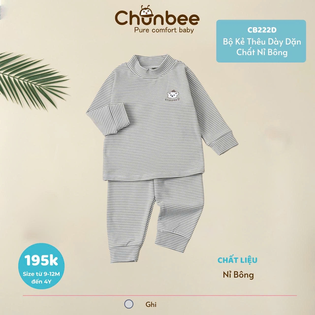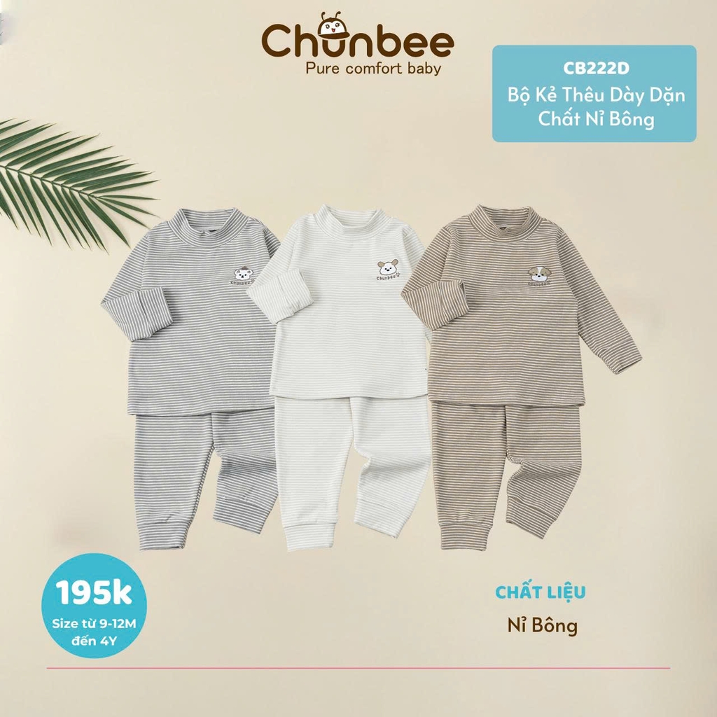 Chunbee - BỘ DÀI TAY KẺ CỔ 3P CHẤT NỈ BÔNG CHO BÉ