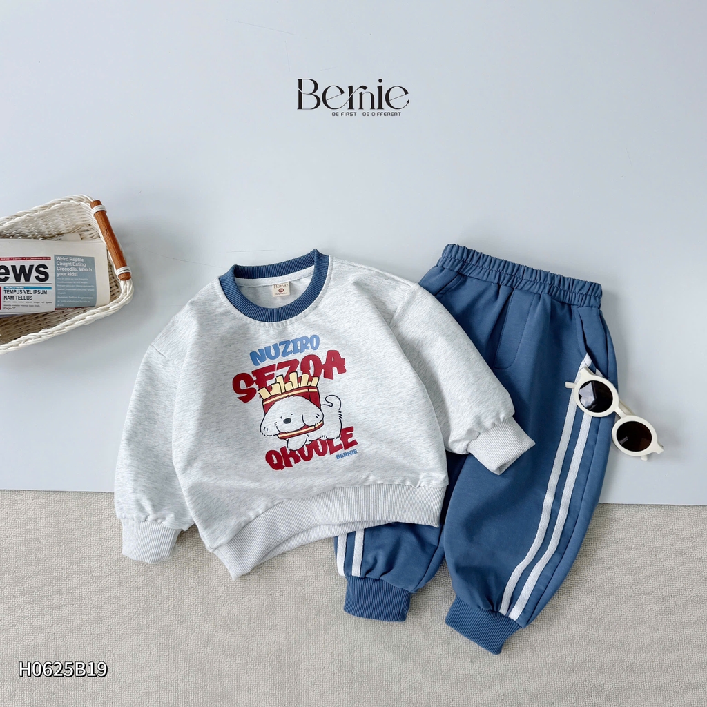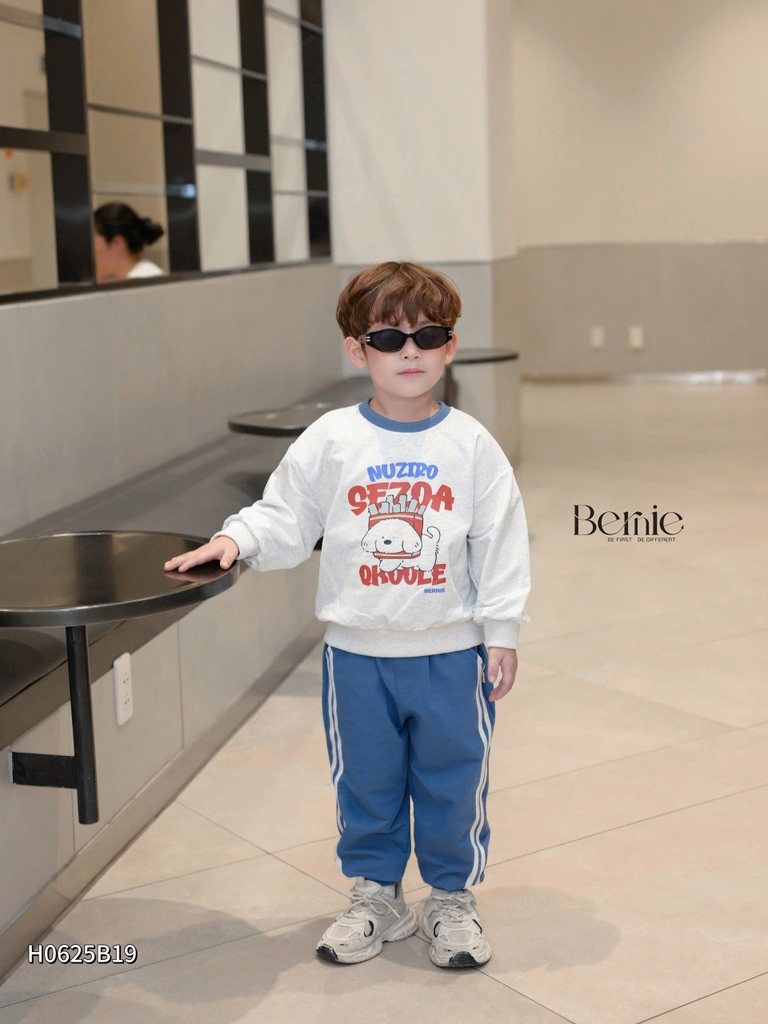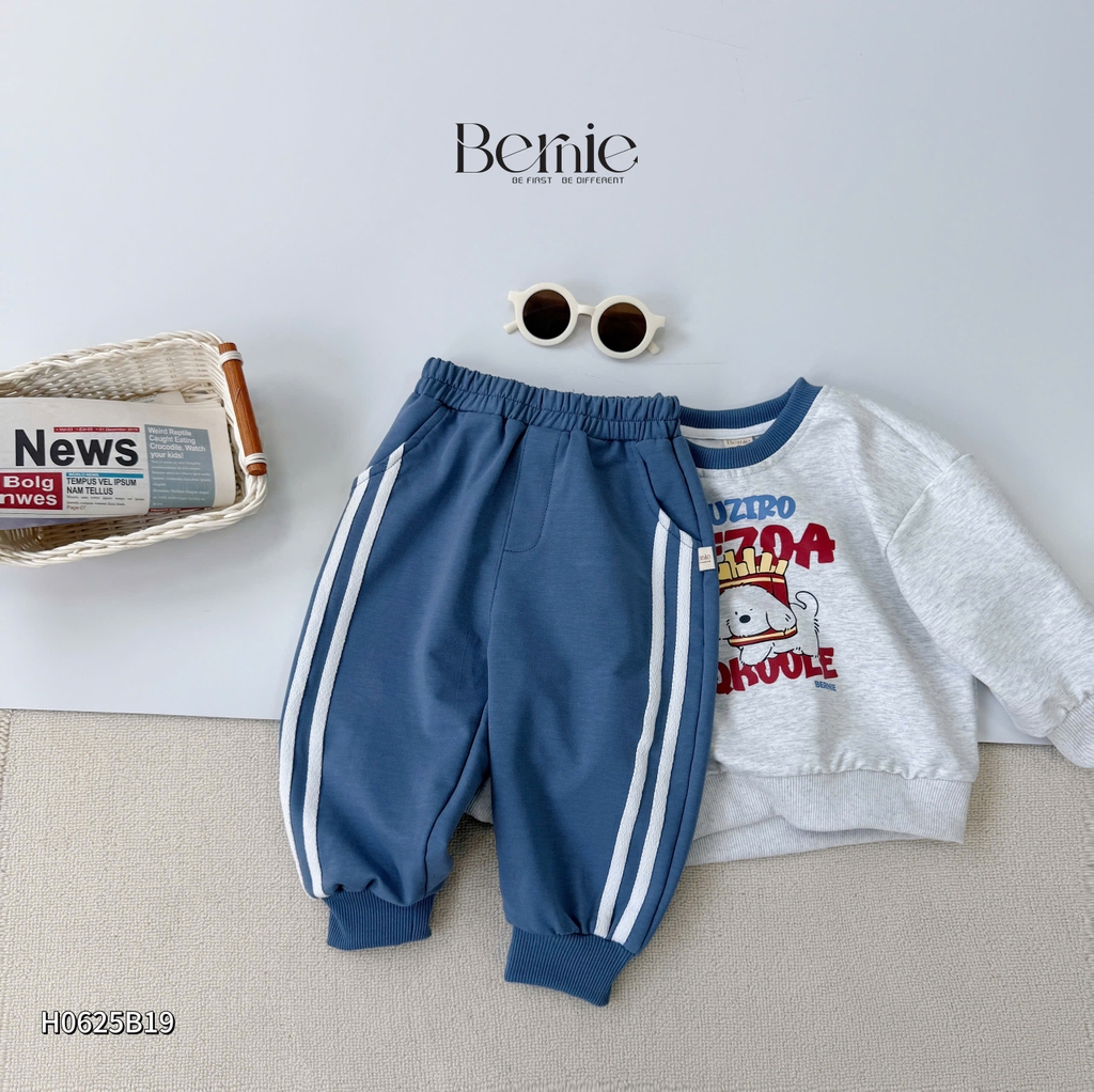🐶 Thiết kế: áo basic bo cổ phối màu, quần phối sọc khoẻ khoắn