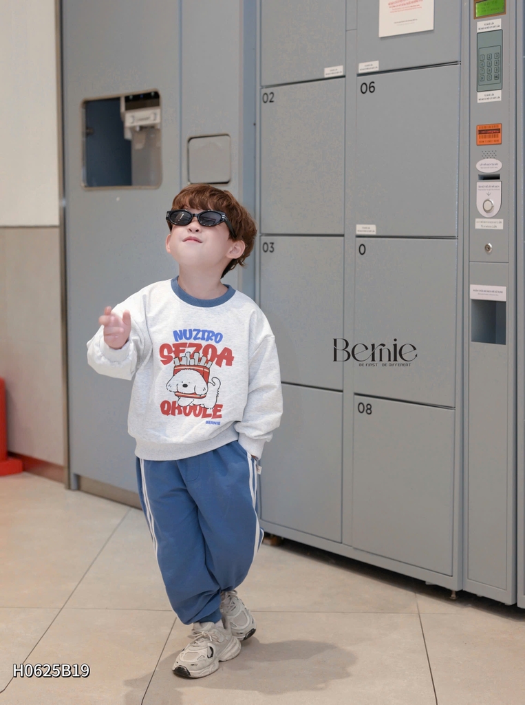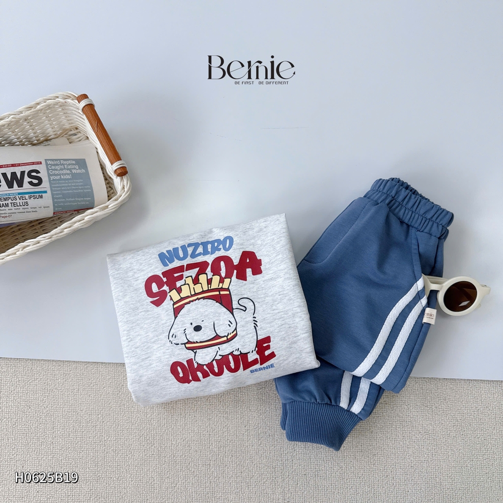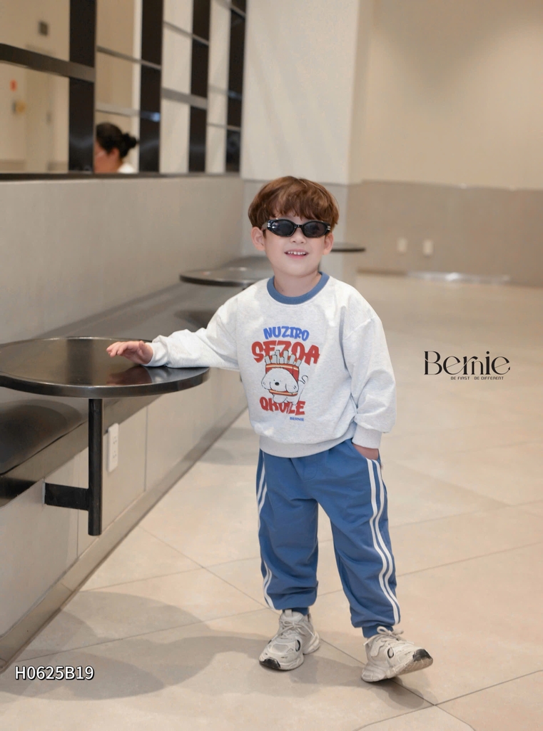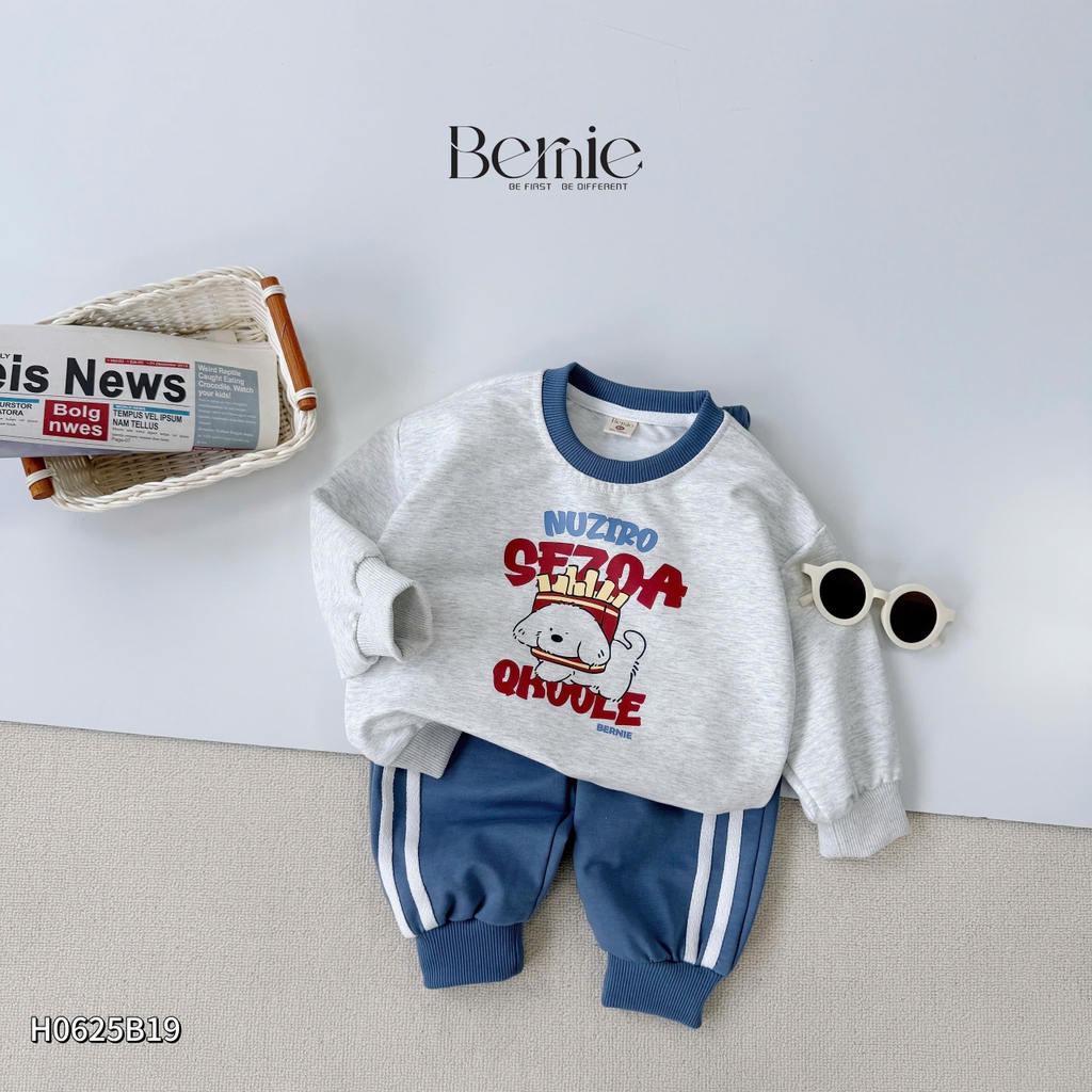 🐶 Thiết kế: áo basic bo cổ phối màu, quần phối sọc khoẻ khoắn
