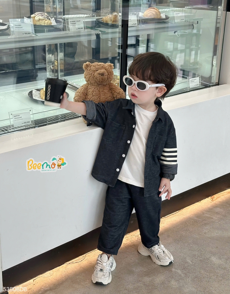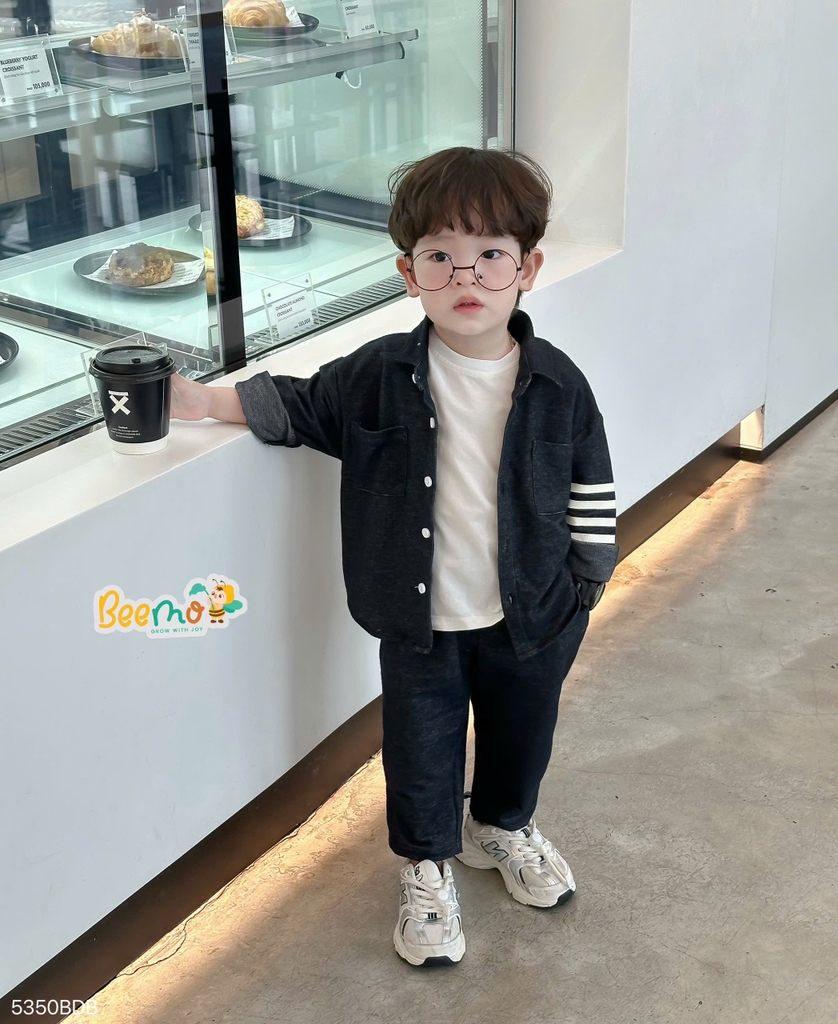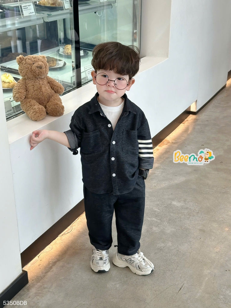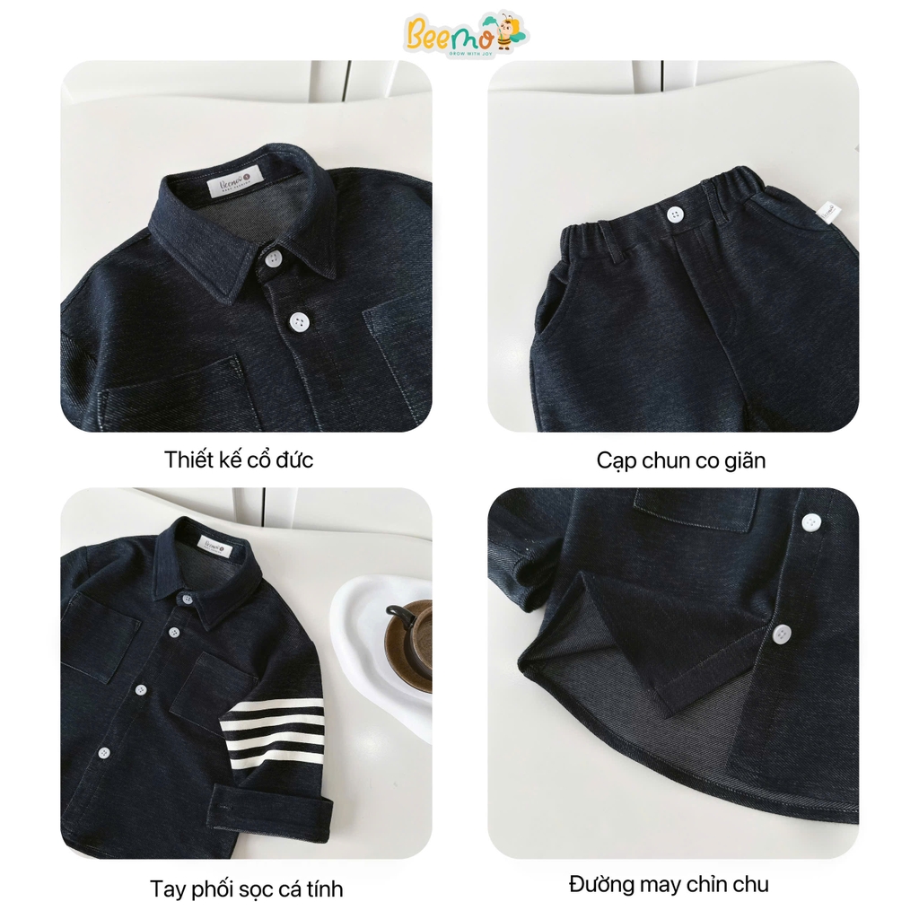 🧸 Thiết kế form rộng hiện đại, trendy với sơ mi cổ đức điểm nhấn phối tay, cùng quần baggy cạp chun nịnh dáng