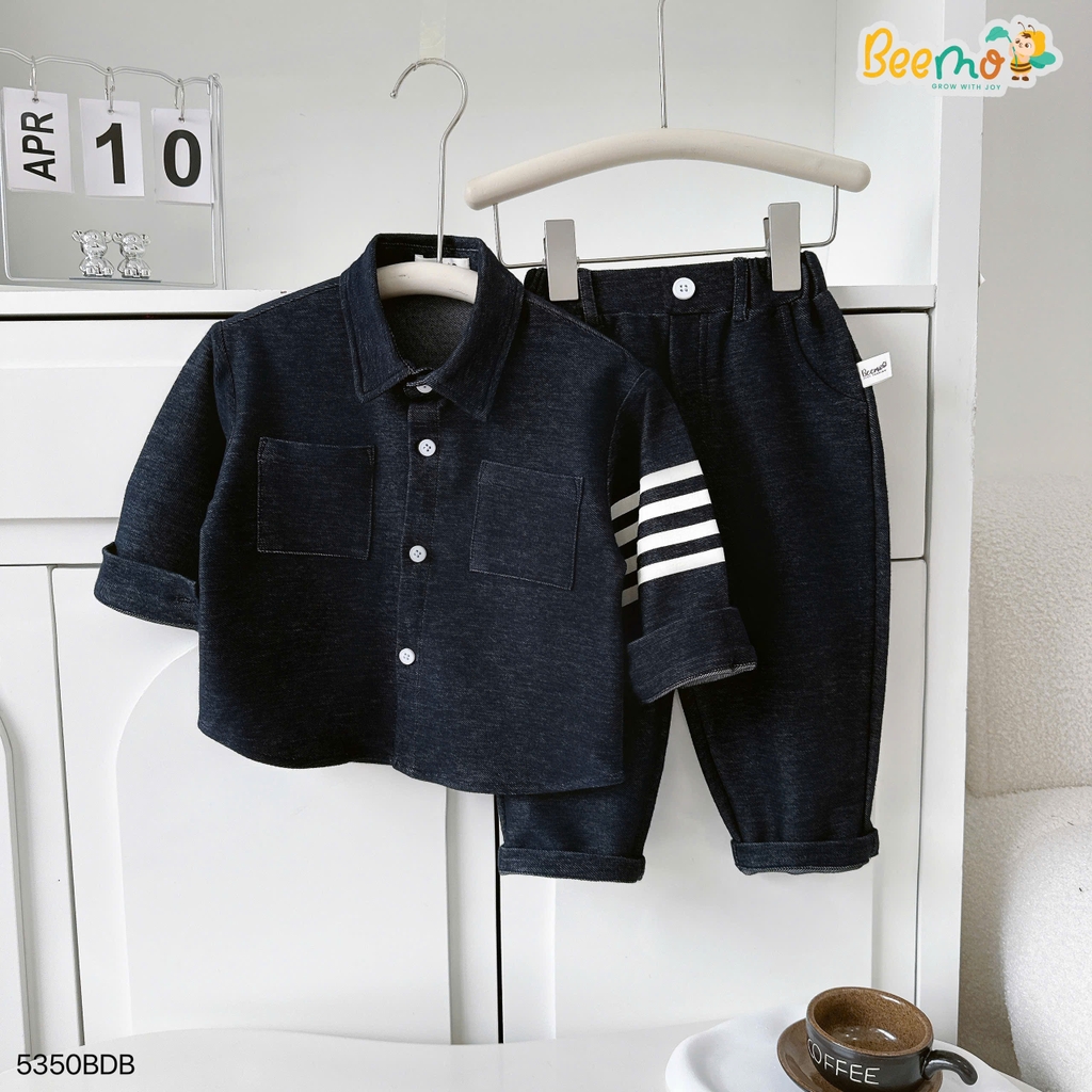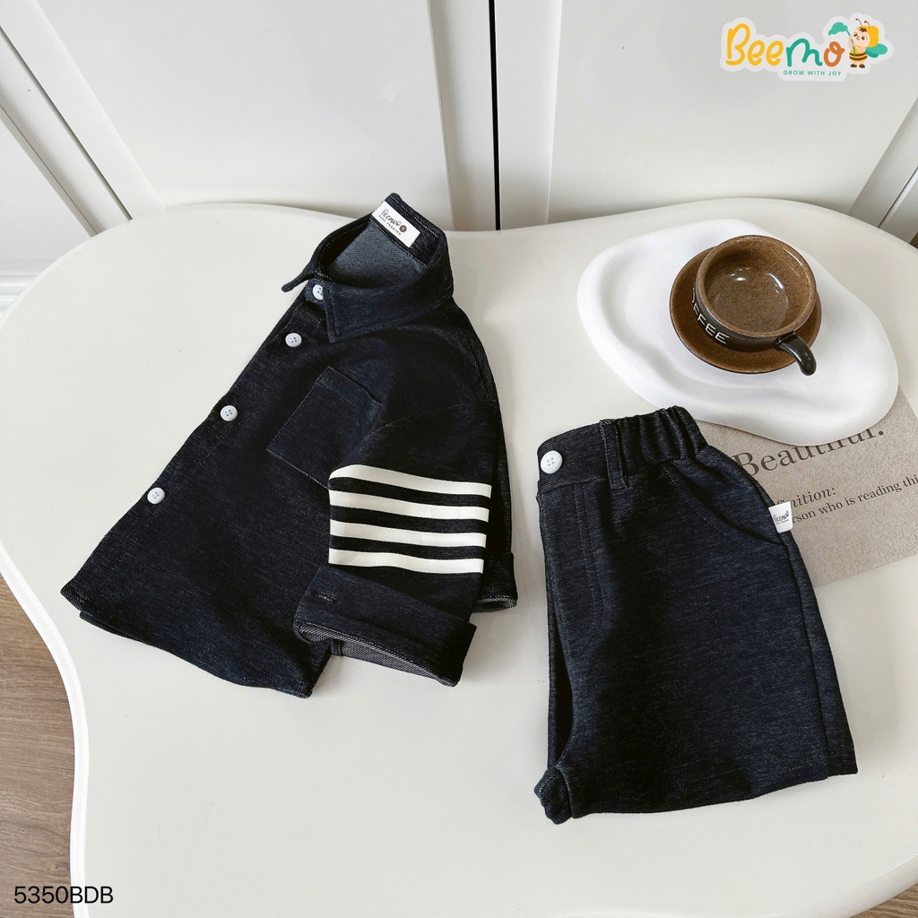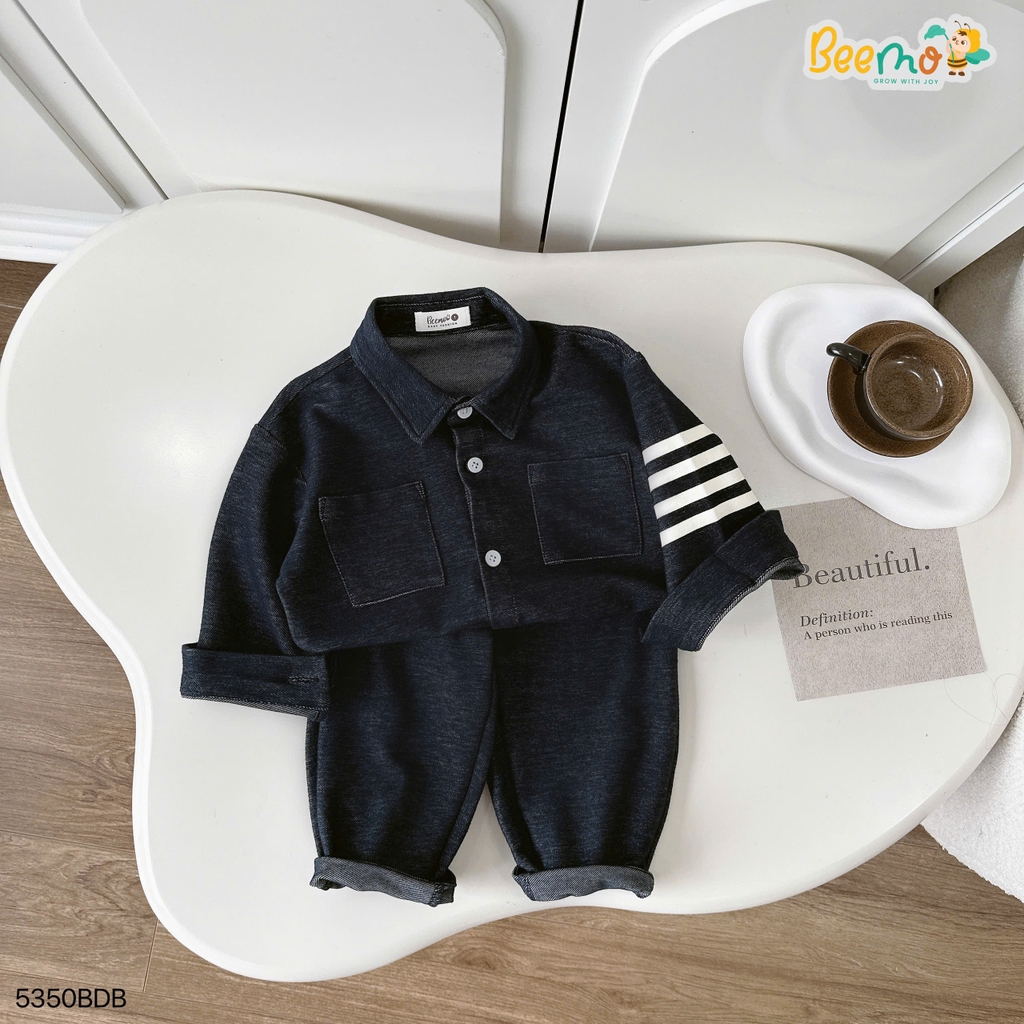 🧸 Thiết kế form rộng hiện đại, trendy với sơ mi cổ đức điểm nhấn phối tay, cùng quần baggy cạp chun nịnh dáng